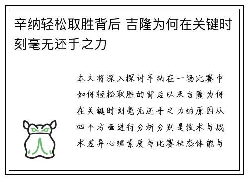 文章摘要:赵睿作为中国篮球队的重要成员,在国际篮球赛场上屡次展现出超凡的球技与比赛智慧。随着对抗型打法日趋复杂,他在比赛中不断调整自己的战术、心理与技术,不仅提升了个人能力,也为团队的成功做出了重要贡献。本文将从四个方面详细探讨赵睿如何在不断变化的对抗型打法中调整自我,提升比赛适应能力。首先,文章分...
